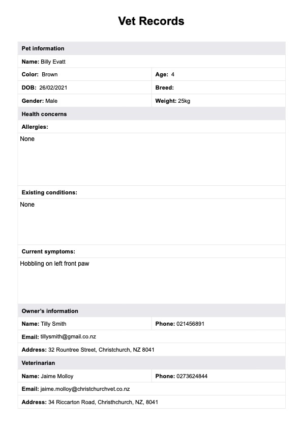 Vet Records Template