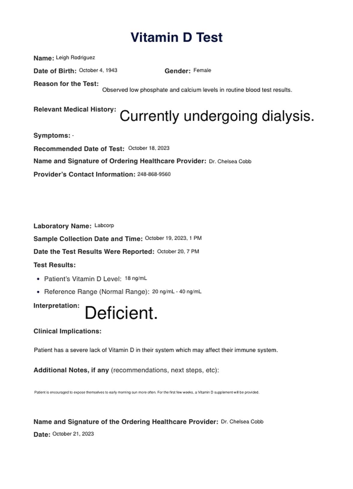 Collecting a sample for the Vitamin D Test will only take a few minutes. However, processing the sample can take several hours to days, depending on the laboratory.