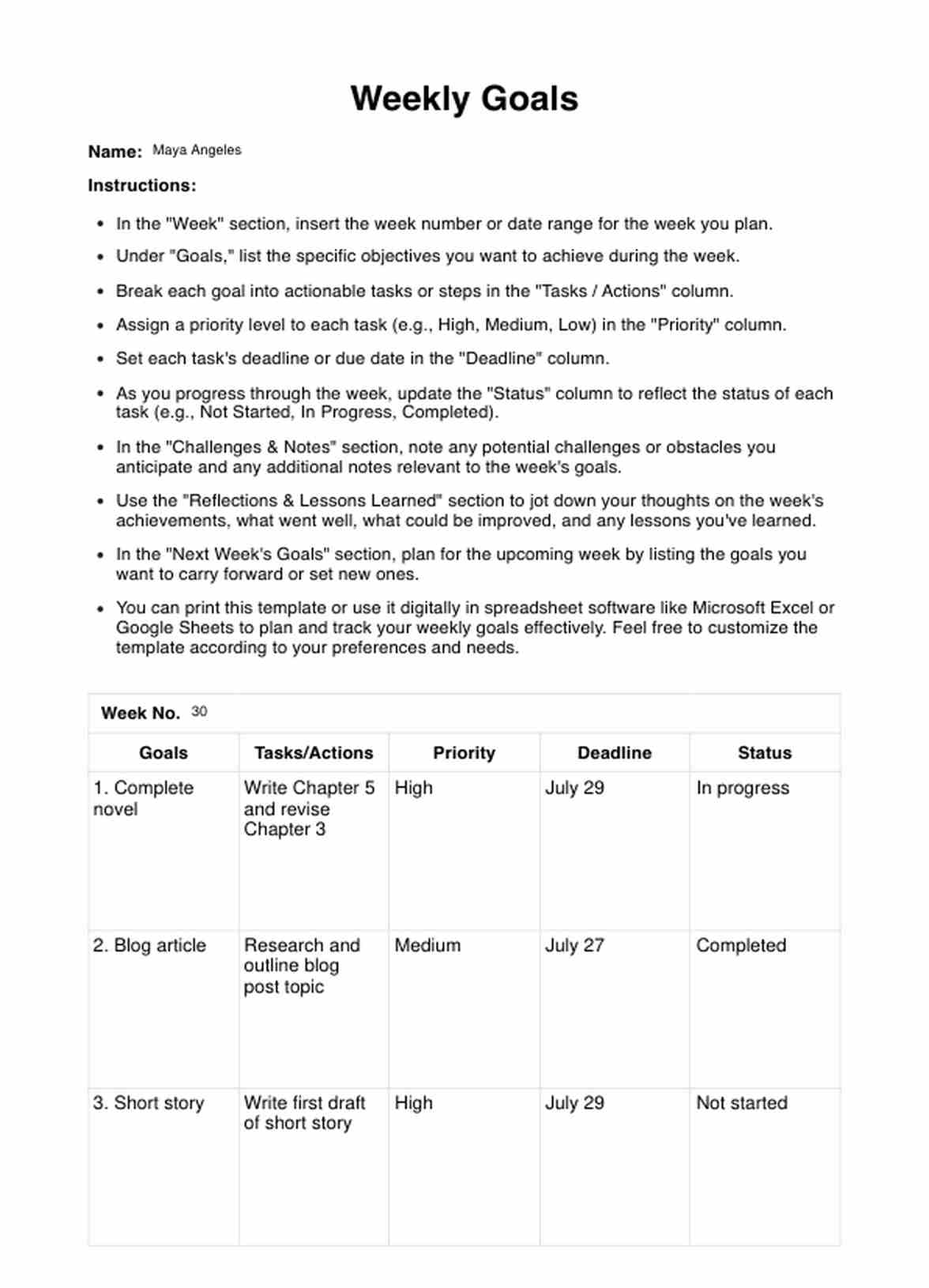 Individuals, professionals, students, and teams across various industries use the Weekly Goals Template to stay organized and achieve their targets.