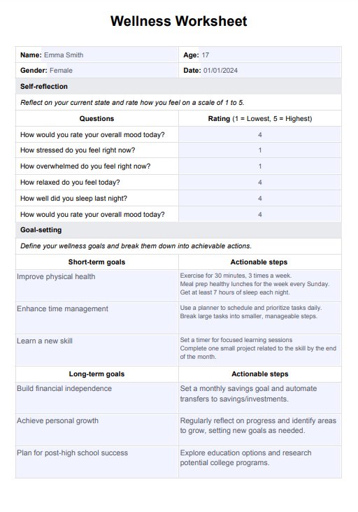 Wellness WorksheetsAI Template IconToolbar IconShare Icon