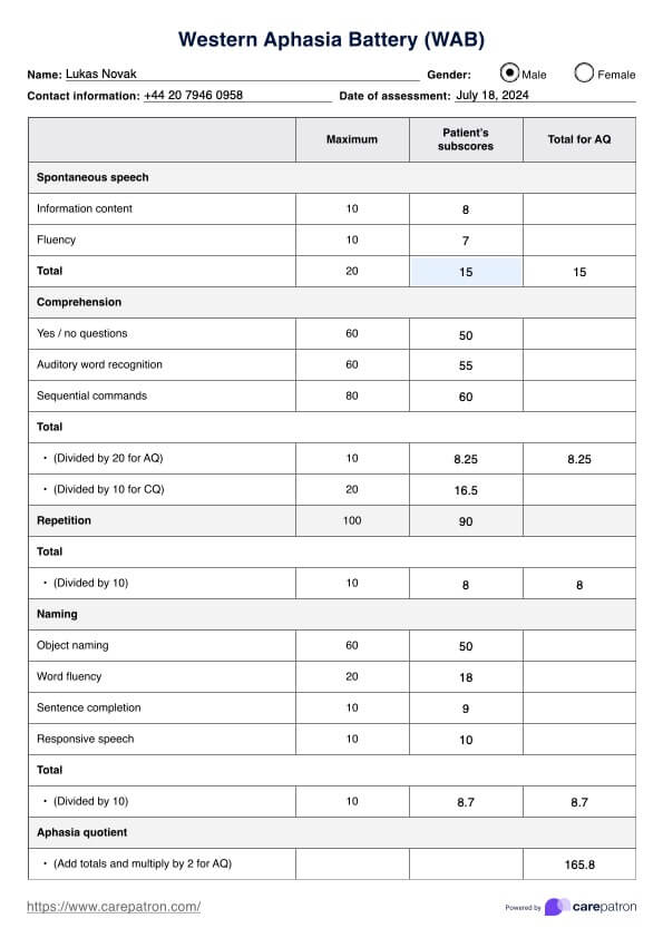 Western Aphasia Battery (WAB) Template