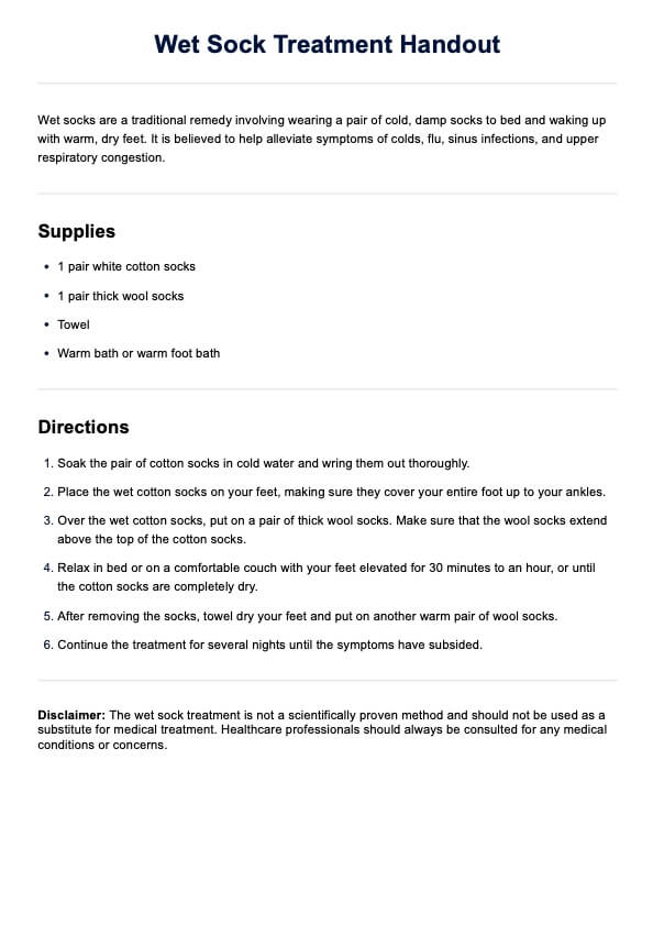 Download Carepatron's free Wet Sock Treatment Handout. Get the PDF template here.