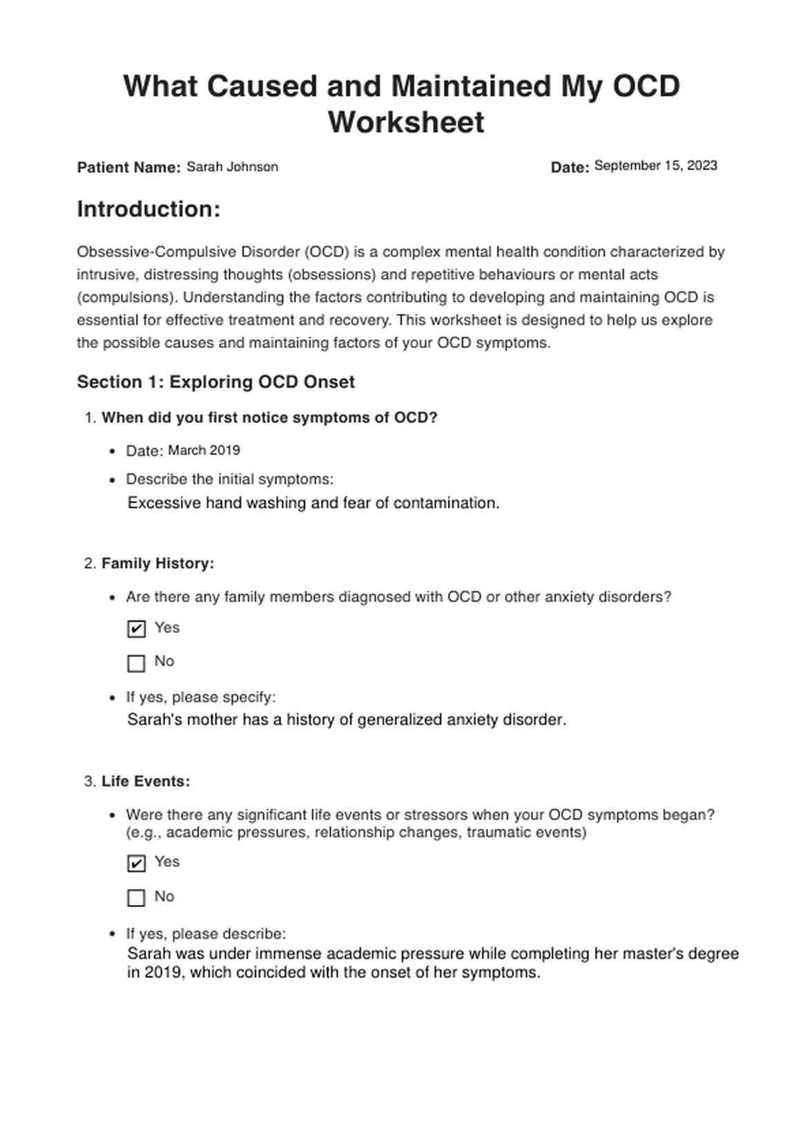 What Caused and Maintains My OCD Worksheet Template