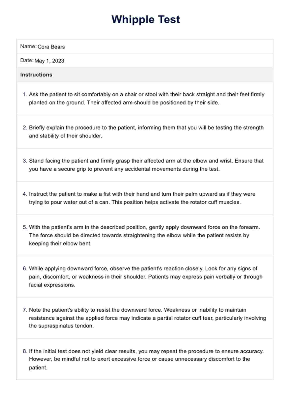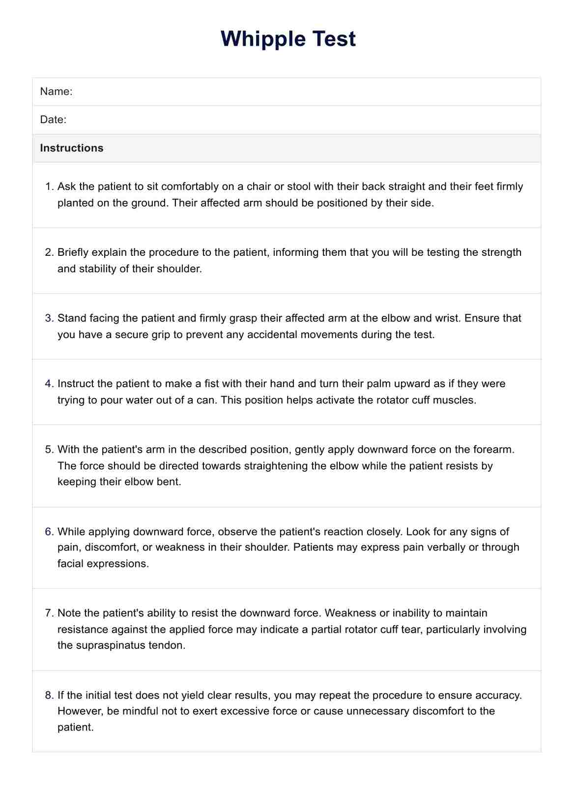 Access a free Whipple Test PDF template for your physical therapy practice. Streamline your documentation with our free form.