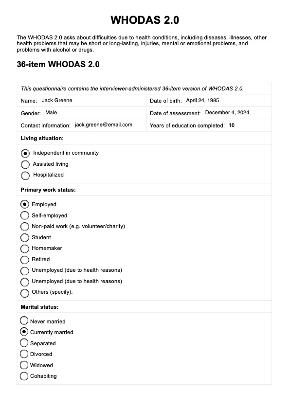 World Health Organization Disability Assessment Schedule (WHODAS 2.0) - 12-item Version