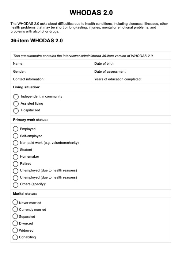 World Health Organization Disability Assessment Schedule (WHODAS 2.0) - 12-item Version Template