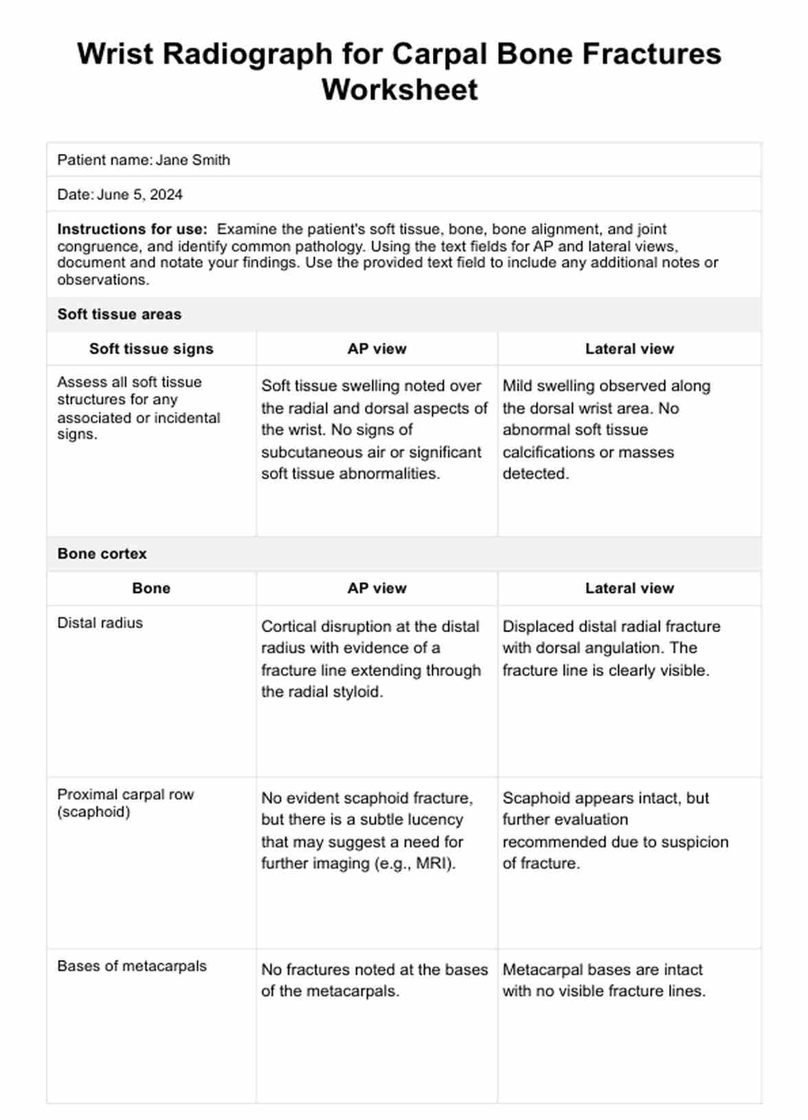 Explore our detailed Wrist Radiograph for Carpal Bone Fractures Worksheet for insights into effectively diagnosing and treating wrist fractures.
