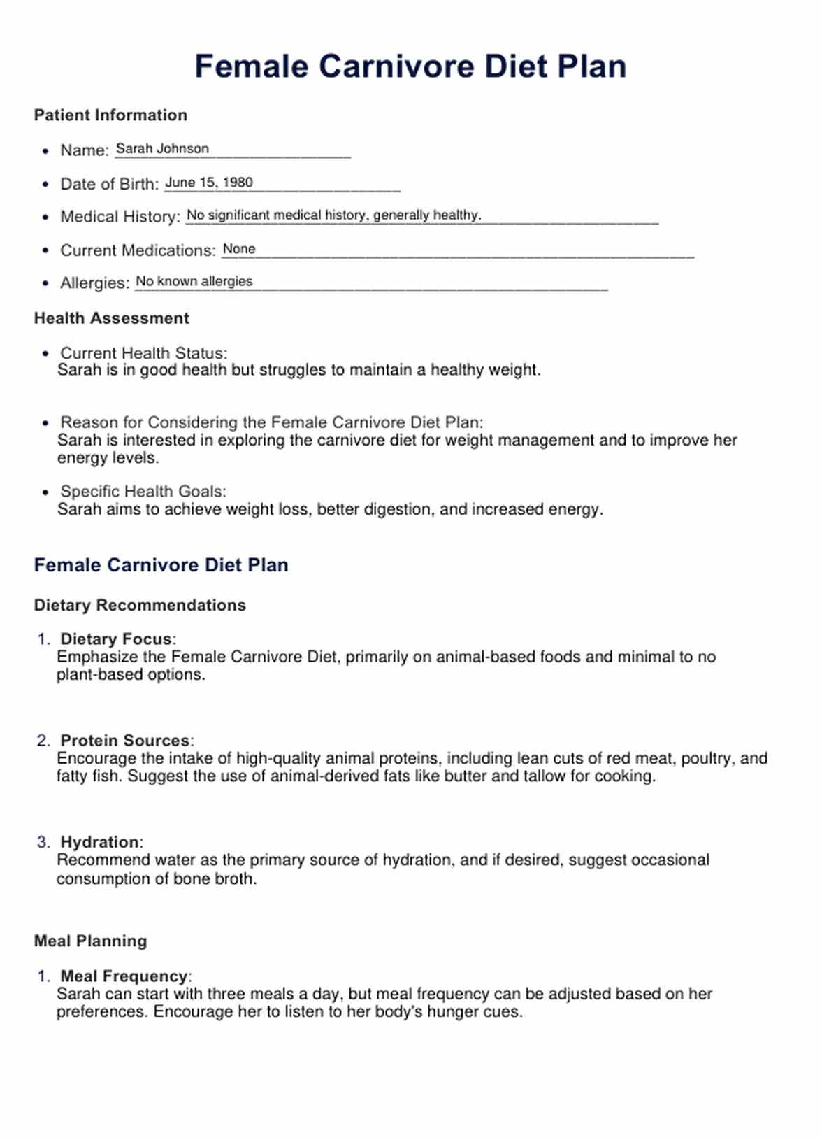 Sağlık hedeflerinize ulaşmak için özel bir Dişi Etobur Diyet Planını keşfedin. Özelleştirilebilir ve etkili. Bugün başlayın!